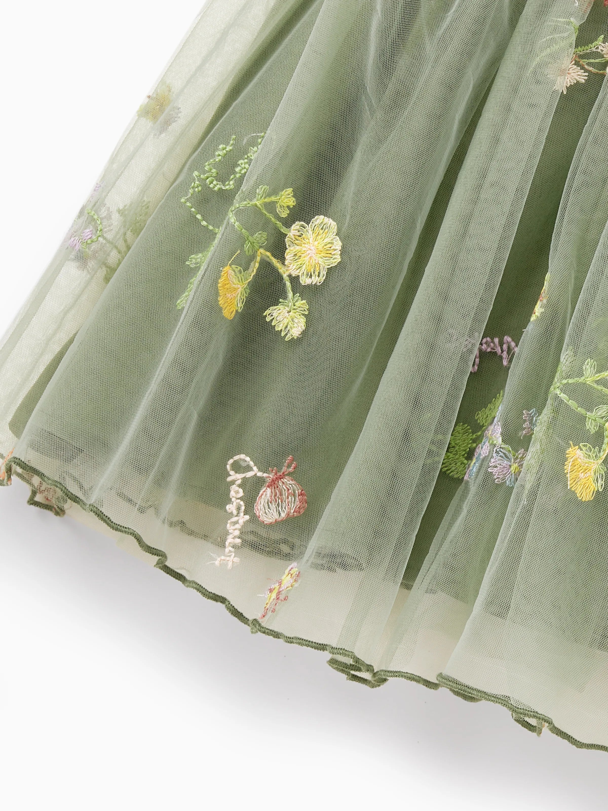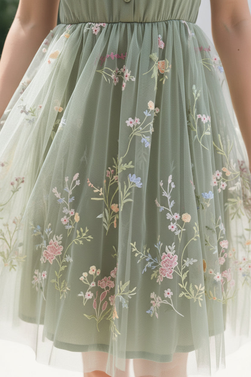 ? Whimsical Floral Embroidery: The delicate floral embroidery on the tulle skirts adds a romantic, fairy-tale touch to any occasion.
